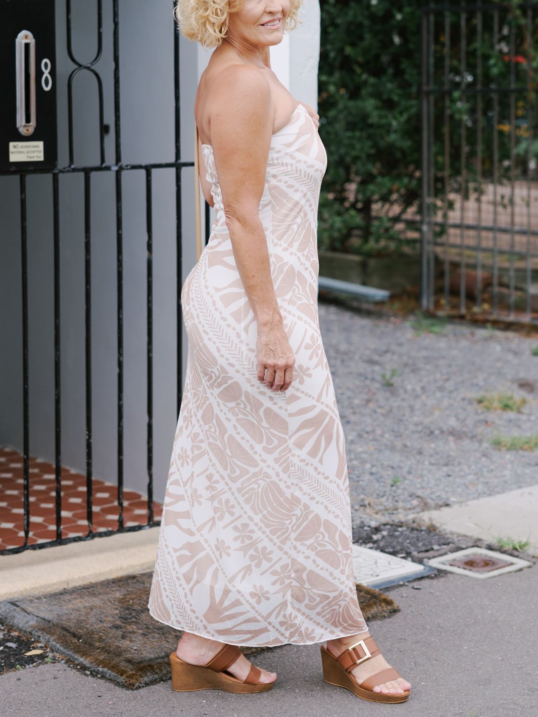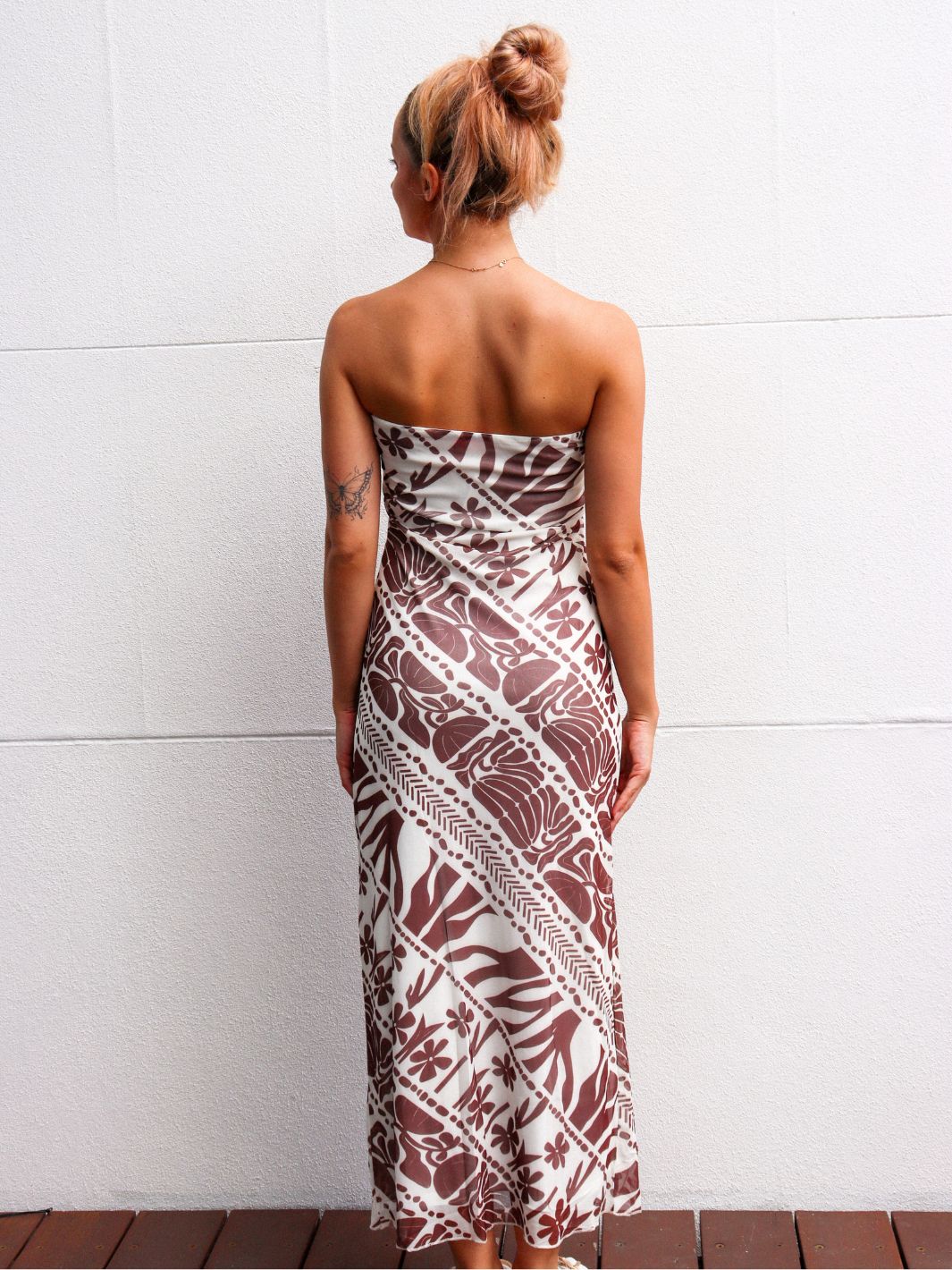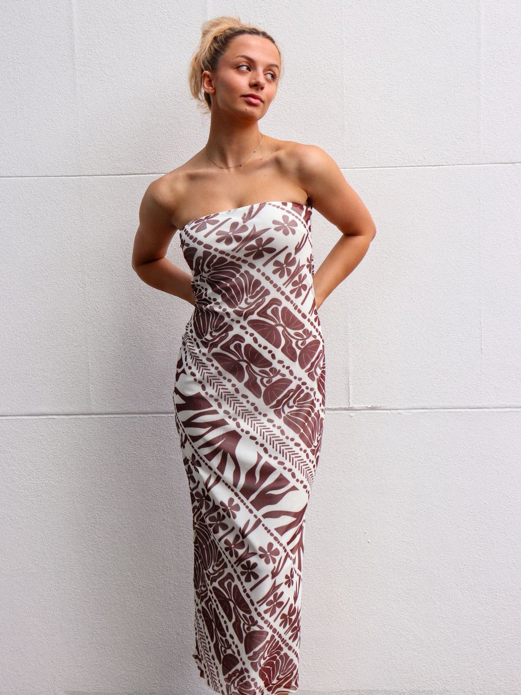 Tropical print and tonal colours, the TAHITI MESH MAXI is made to fit perfect and be comfortable while doing so. With the strapless cut, layer this pieces without trouble or get the arms out for a summer night.