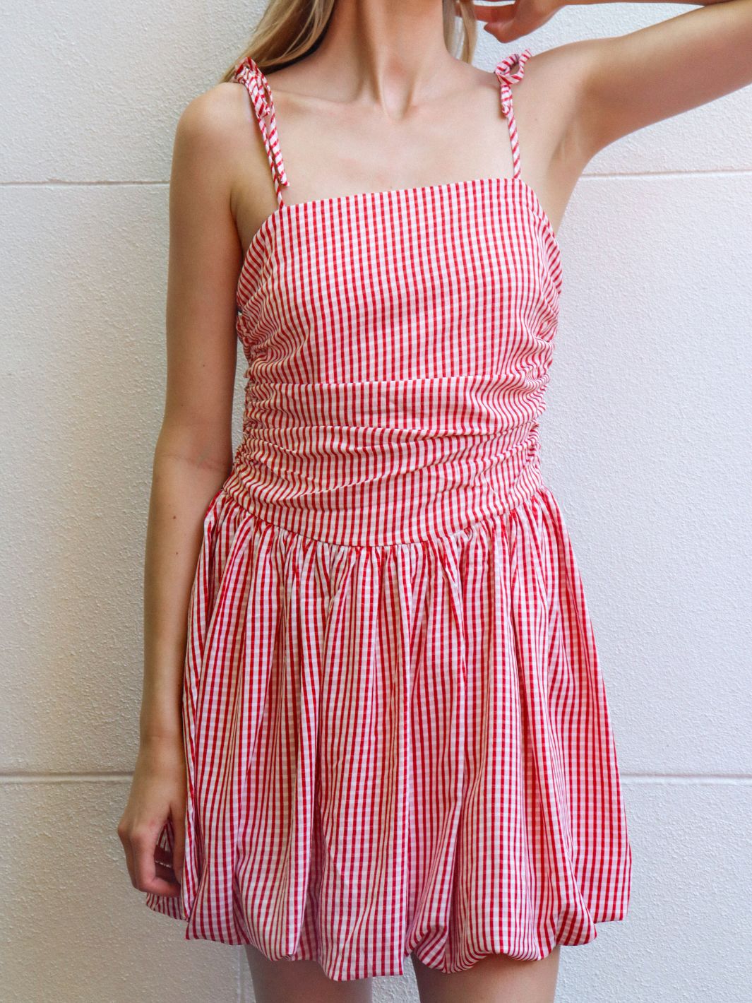 Make your next picnic perfect with our PICNIC MINI dress. The adorable gingham print and bubble dress cut will have you looking effortlessly stylish. The gathered bodice provides a comfortable and flattering fit, while the shoulder ties add a playful touch.